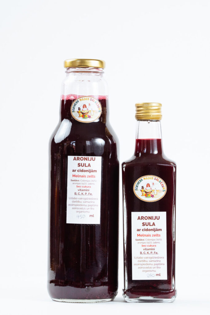 Vitamīni no saldējuma ogu dārza veltēm: 1. ARONIJU SĪRUPS – Melnais zelts straujiem sirdspukstiem / 100 ml 2. IRBEŅU SĪRUPS – Veselības eliksīrs sirdscilvēkiem / 100 ml 3. SMILTSĒRKŠĶU SĪRUPS – Mundram garam saules luteklīšiem / 100 ml
